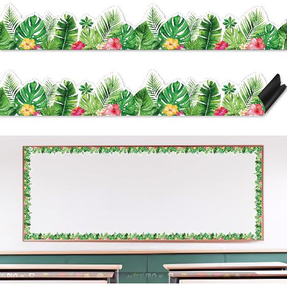 Cute Classroom Bulletin Board Border: this greenery plant bulletin board border decoration is composed of many tropical leaf patterns