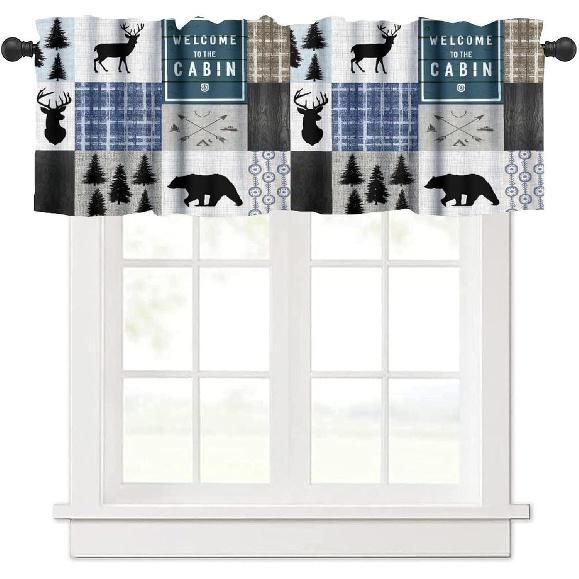 Rustic Cabin Kitchen Valances Curtain,Vintage Country Farmhouse Bear Moose Deer Rod Pocket Small Valance Treatments for Living Room Bedroom
