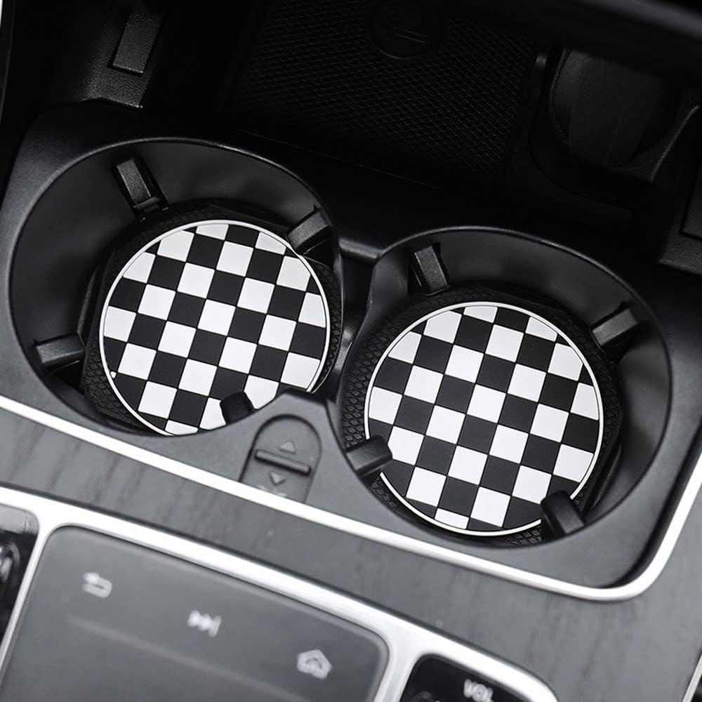 Car Coasters for Cup Holder Silicone, Car Cup Holder Coasters Pack of 2, Fashion Black White Checkerboard Gird