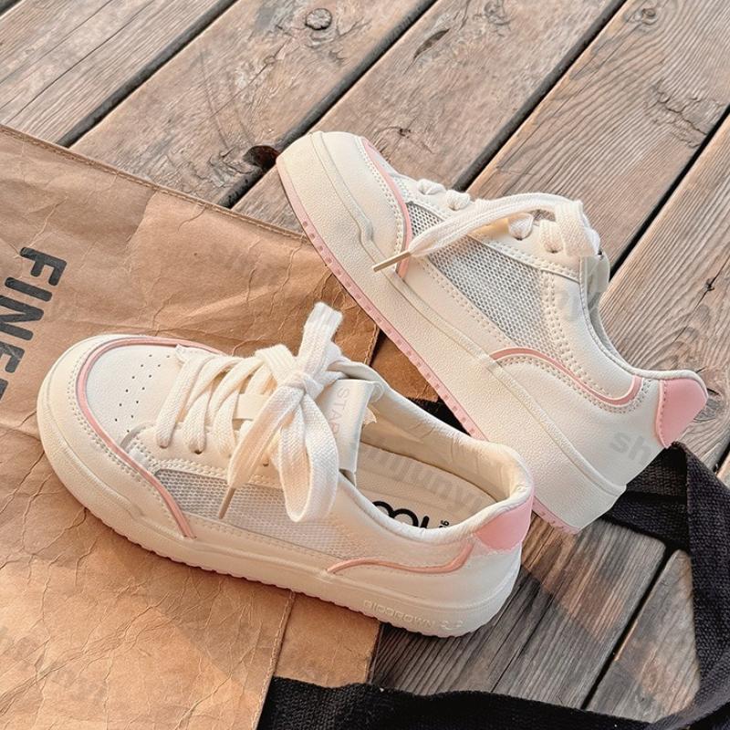 Women's White Board Shoes 2026 Summer Autumn Fashion Lace Up Student Platform Casual Shoes Breathable Comfortable Non Slip Flats