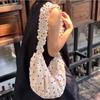 2025 New Versatile Pleated Lace Polka Dot Dumpling Bag Drawstring Zipper Messenger Canvas Bag Commuter Tote Bag Women
