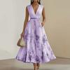 Women V Neck Sleeveless Party Draped Maxi Dresses Vintage Elegant Office Floral A-line Dress For Women Lady Chic Evening Gown