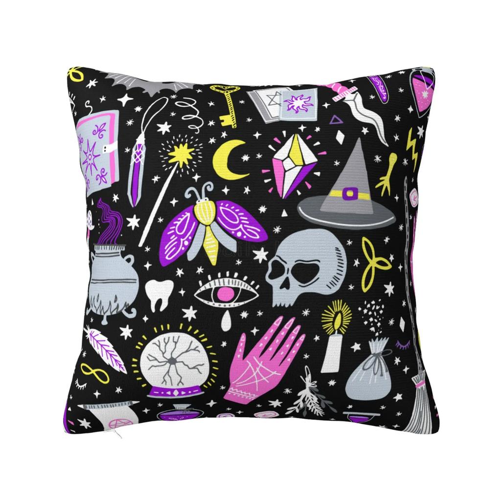 Magic Witch Goth Skull Throw Pillow Cover Pillowcase Soft Square Pillow Case Cushion Cover for Home Car Decorative 18x18 Inch