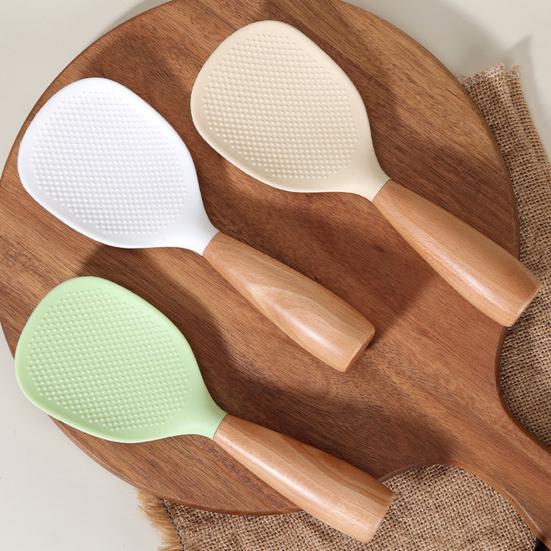 The non-stick silicone surface ensures cooked rice slides off easily, preventing sticky messes. Made from heat-resistant silicone and a sturdy wooden handle, this spoon won't warp or melt, ensuring long-lasting durability. Easy to clean by hand or dishwasher safe for convenience.