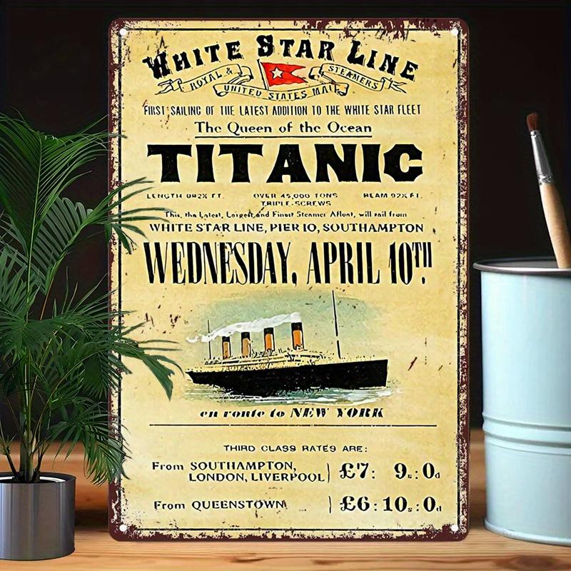 Vintage Titanic Metal Wall Art April 10th Commemorative Retro Iron Sign for Bars Cafes Beach Houses Backyards Maritime D