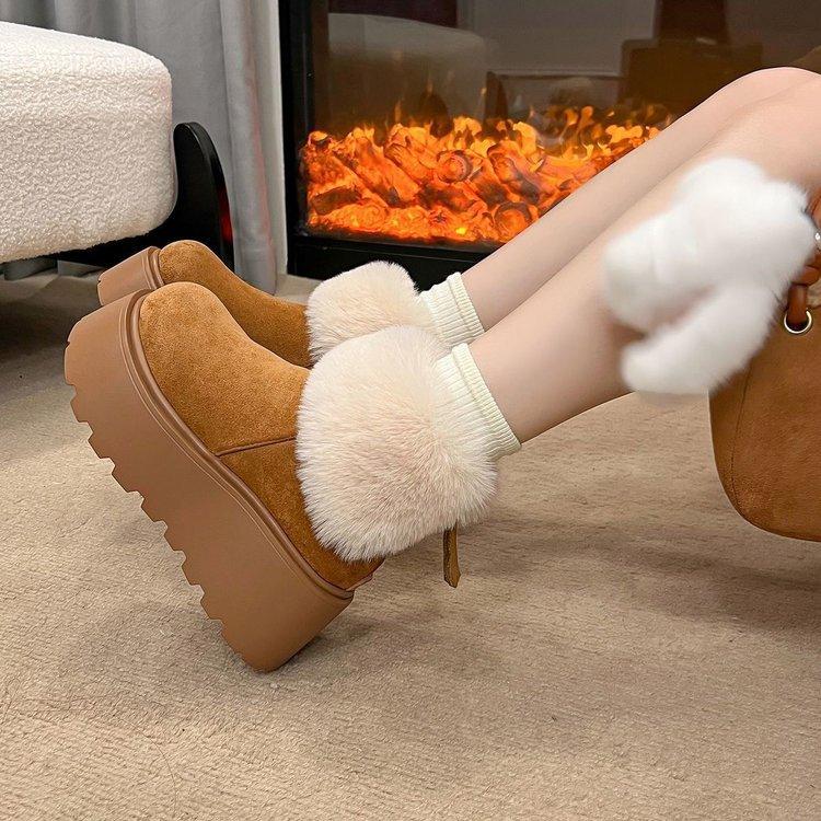 Small Muffin Thick-soled Velvet Snow Boots Winter Internet Celebrity Super Fire Hair Short Boots