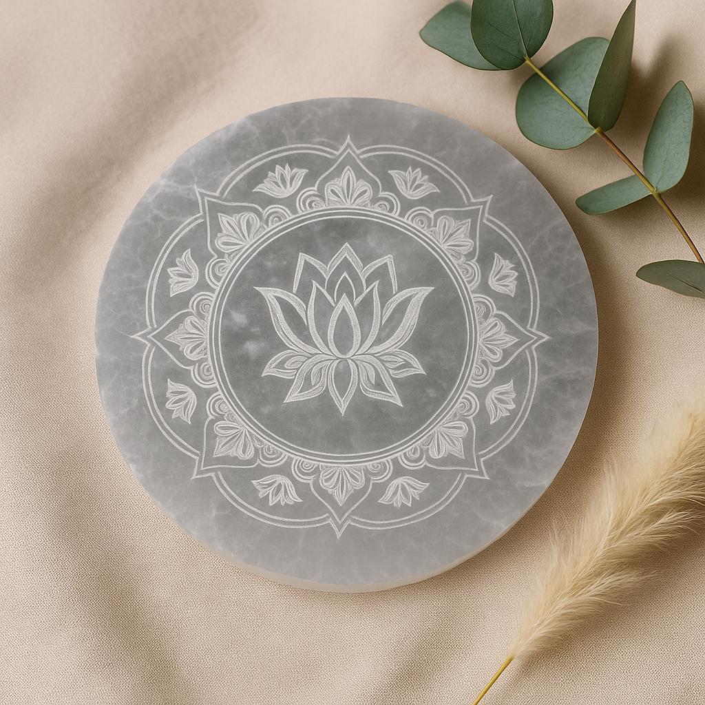 Selenite Charging Plate Lotus Mandala 10 Cm