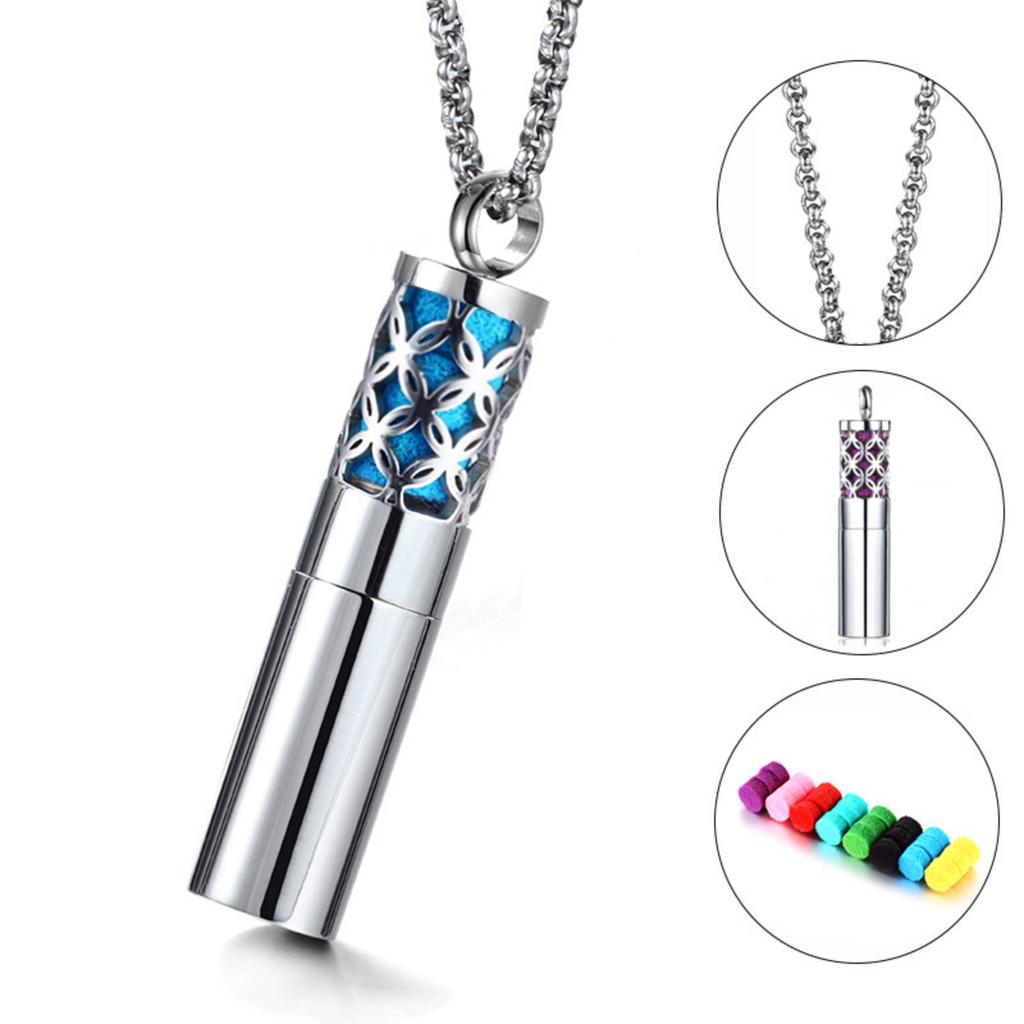 Stainless Steel Perfume Bottle Pendant, Titanium Steel Aromatherapy Necklace