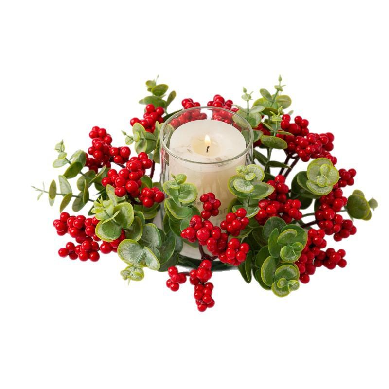Eucalyptus Christmas Wreath Candle Ring Berry Candle Decorative Table Setting Accessories Candle Holder Wreath