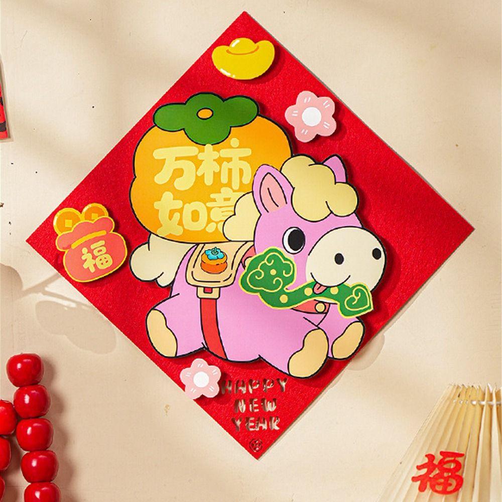 Cartoon New Year Door Stickers Traditional 2026 Horse Year Fu Character Sticker Felt Blessing Words Zodiac Horse Stickers