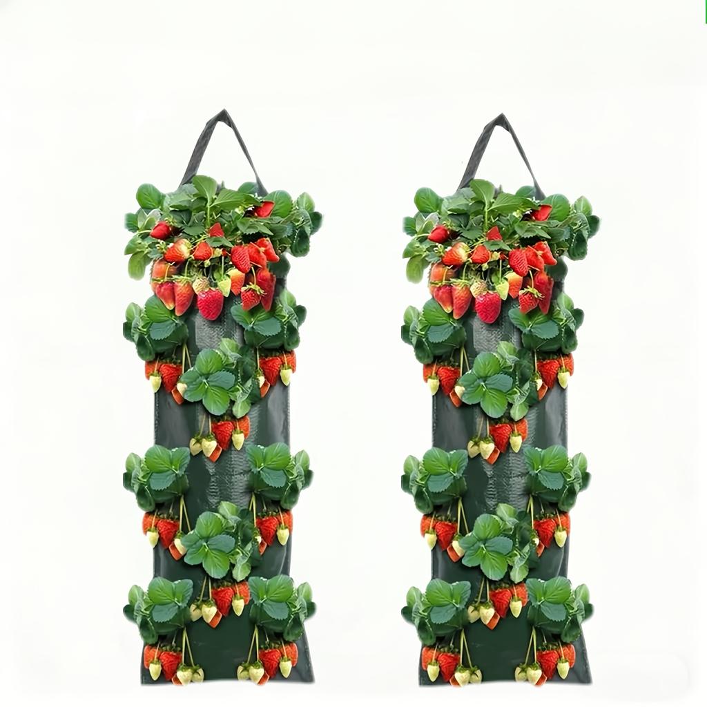 2pcs Wall-Mounted Strawberry Grow Bags, Hanging Planter Bags, Multi-Hole Strawberry Planting Bags for Balcony and Garden, Breathable, Water-Permeable