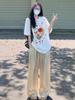 American Vintage Short Sleeve Pure Cotton T-Shirt Women's Summer Loose Plus Size Trendy Leisure Printed Casual Round Neck Top