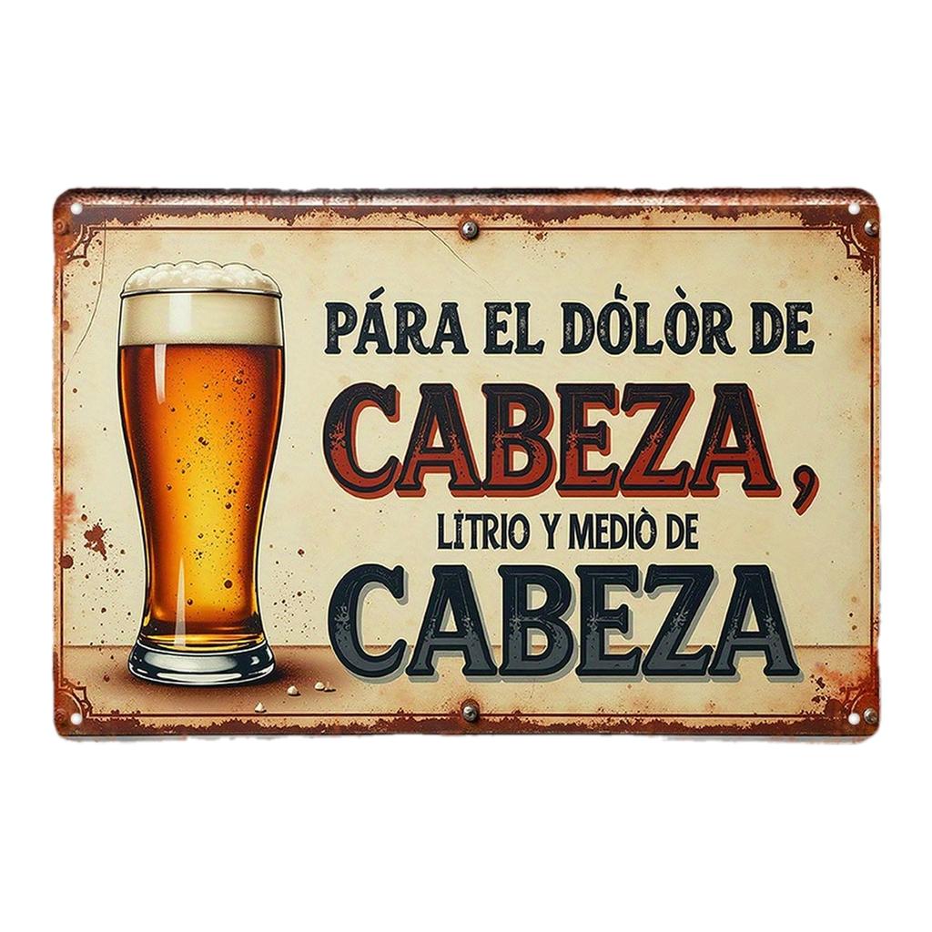 Beer Relieves Headache Illustration Theme Vintage Metal Iron Sign Hanging Plaque Decor Suitable for WallsRoomHomeDin