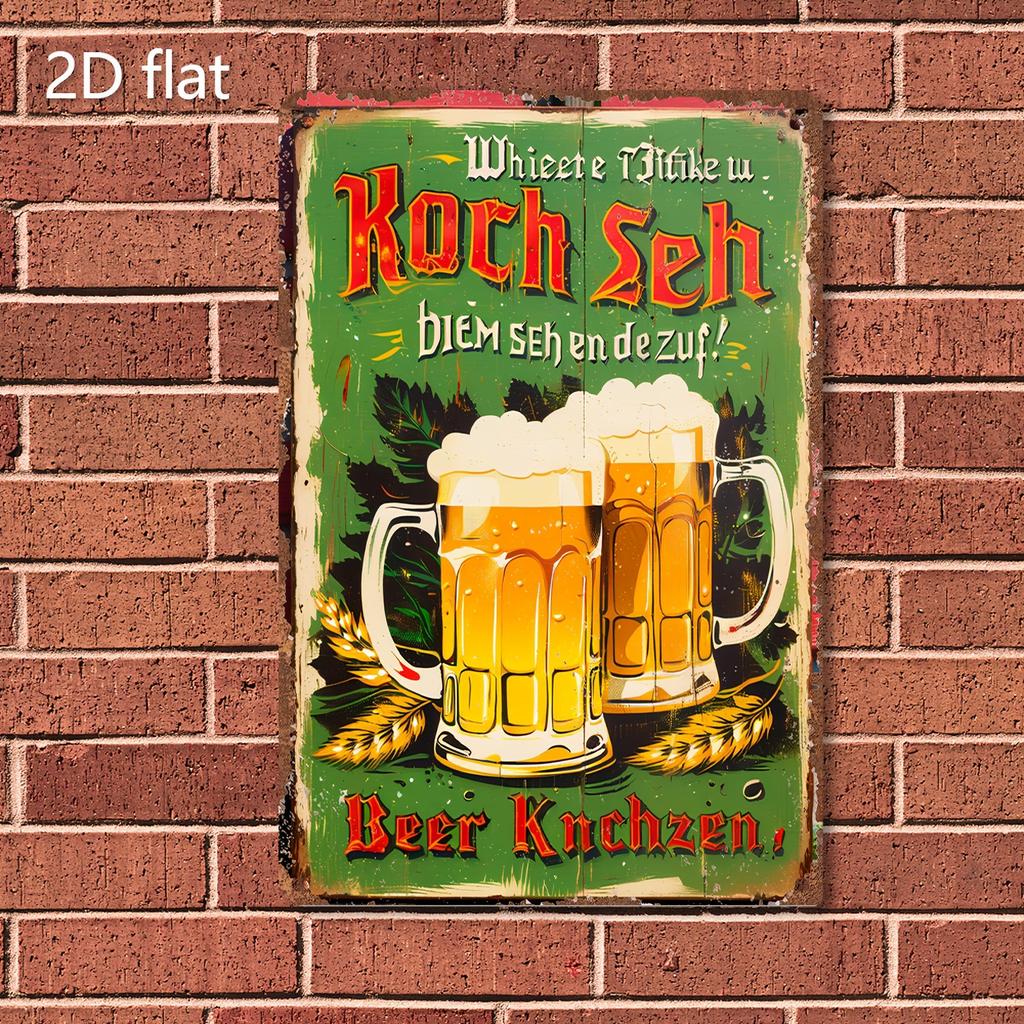 Vintage Beer Advertisement Iron Sign Rustic Wall Hanging Decorative Plaque with German Quote Perfect for Home and Office