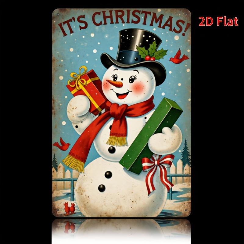 Vintage Snowman Christmas Metal Tin Sign Rustic Iron Wall Art with ItS Christmas Design Festive Snowman Reindeer