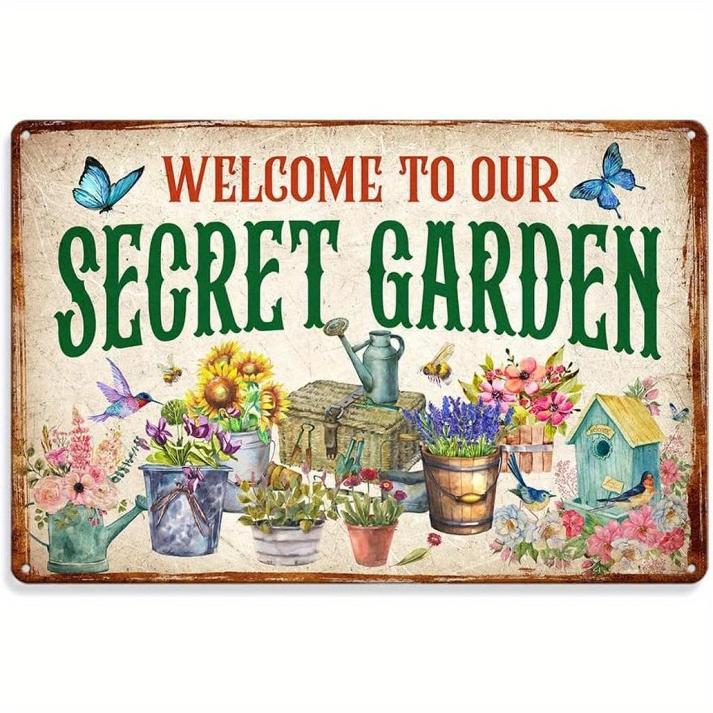 Welcome To Our Secret Garden Rustic Metal Wall Sign Vibrant Outdoor Decor with Flower Design Perfect Gift for Gardeners