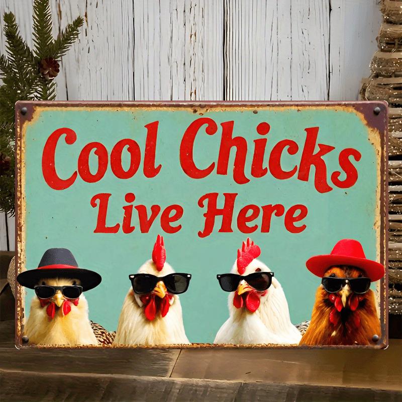Cool Chicks Live Here Metal Sign Vintage Decorative Iron Wall Hanging Plane Craft Effect English Text for Bedroom Far