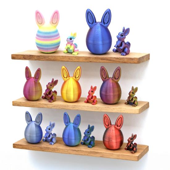 The creative design combines an Easter egg with a movable rabbit model that splits into two parts, adding interactive fun. Made from durable, eco-friendly 3D printing material, its safe for play and long-lasting display. A unique gift choice for festivals or daily enjoyment.