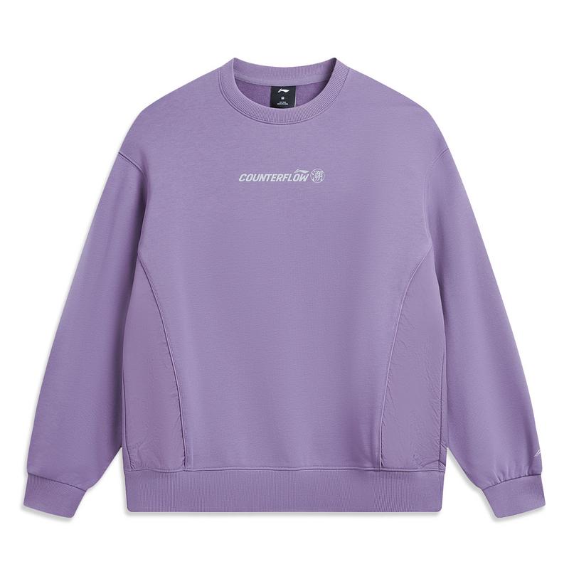 Li Ning Outdoor CF Soft Skin-Friendly Water-Resistant Loose Round Neck Sweatshirt Women Sweatshirt Mineral-Purple AWDW172-4