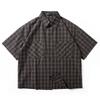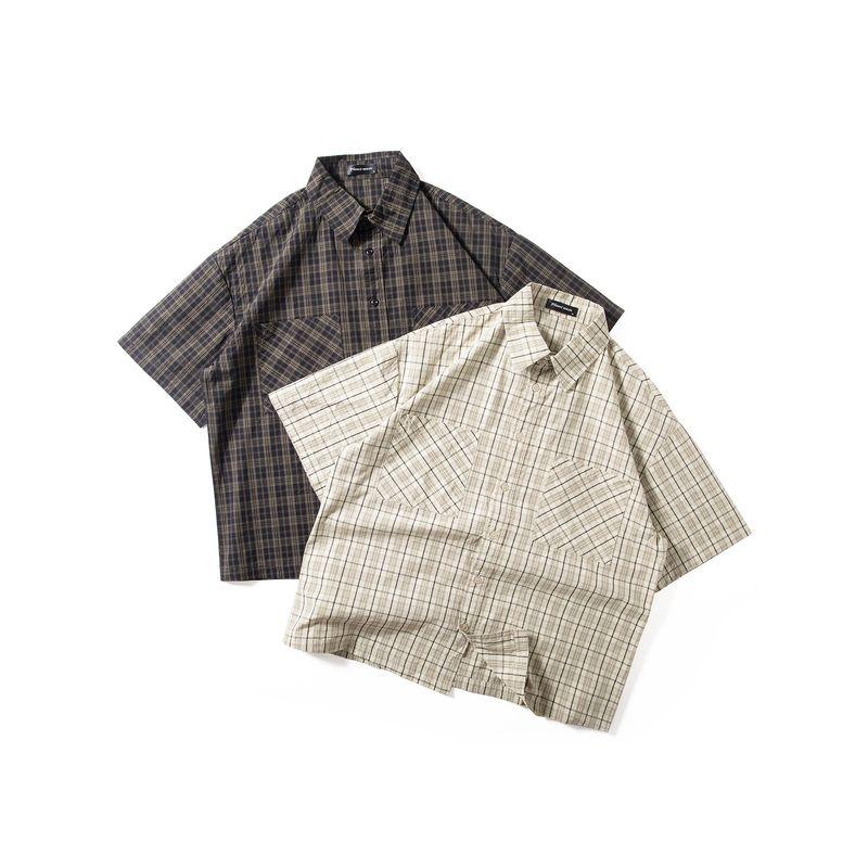 Short-Sleeved Shirt for Men, Summer Trendy Japanese Retro Plaid Cotton Top, Loose Wide-Fit Artistic Half-Sleeve Shirt