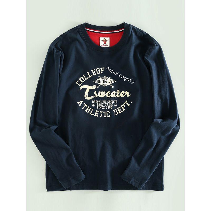 Men's Long-Sleeve T-Shirt with Round Neck, Pullover Style, Printed, Stretchy, Suitable for Spring and Autumn, Export Surplus