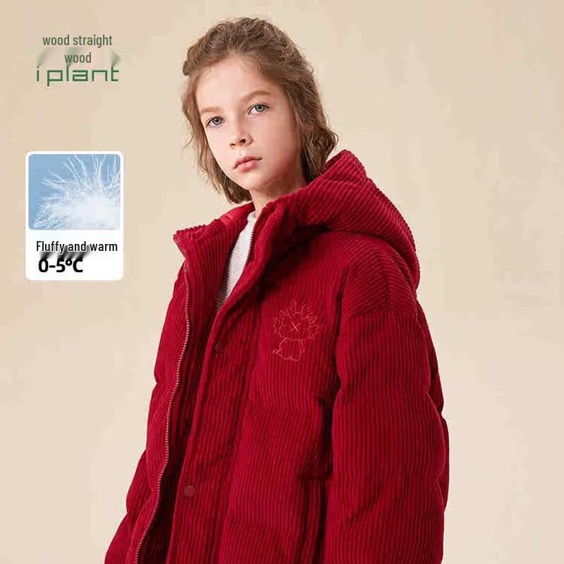 Zhimu Kids' Plush Corduroy Hooded Down Jacket
