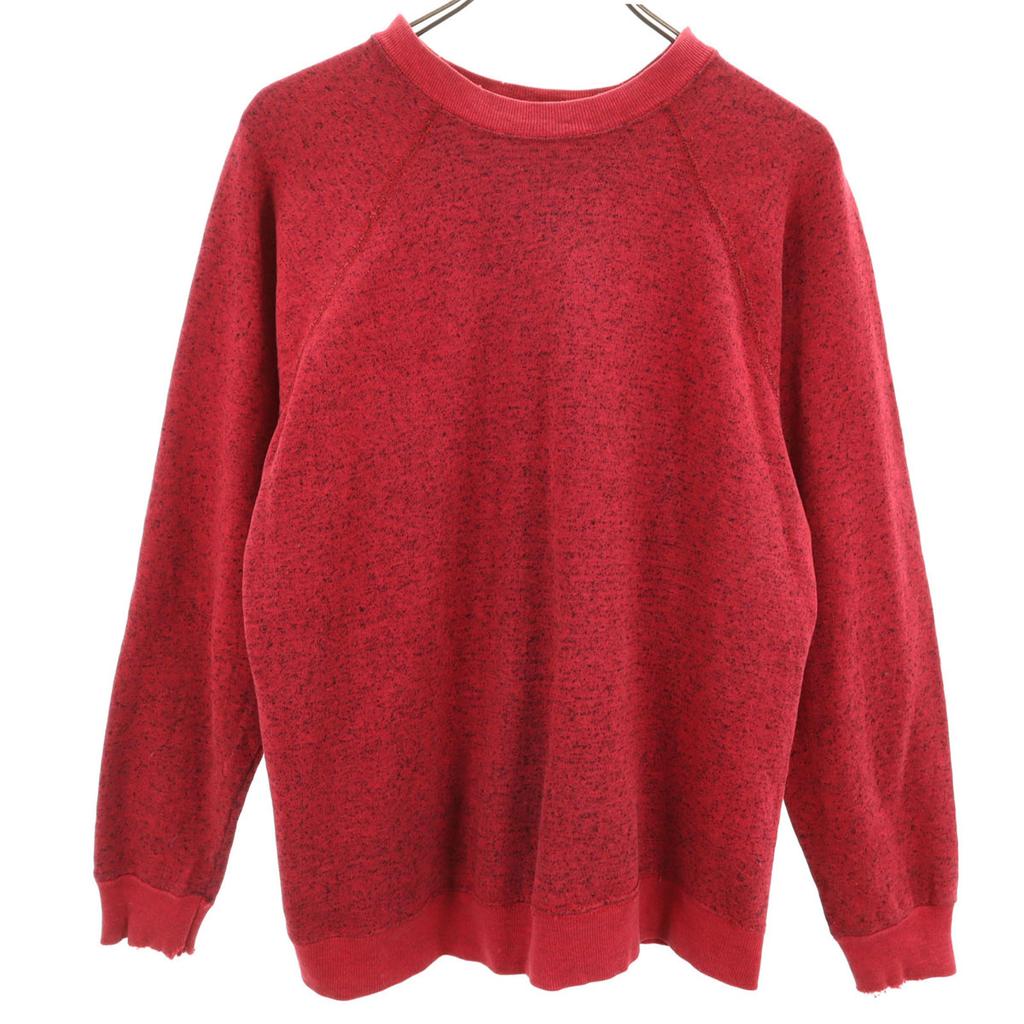 The tag has been cut off, so the size and material are unknown. Please refer to the actual measurements. There is overall rubbed and fading. There is peeling around the neck and cuffs, and staining on the cuffs. Please understand that this is a used item before purchasing.
