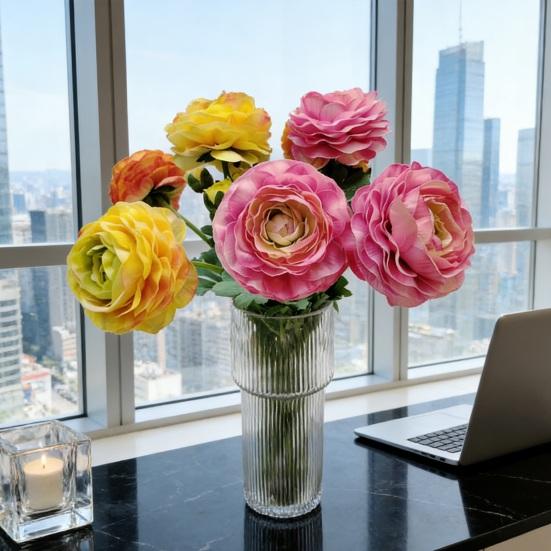 Vibrant and Realistic Design: Crafted from high-quality faux silk and plastic, this artificial flower bouquet features bright colors and rich layers that closely mimic natural blooms. Its lifelike appearance adds elegance and charm to any space without the worry of wilting or fading.