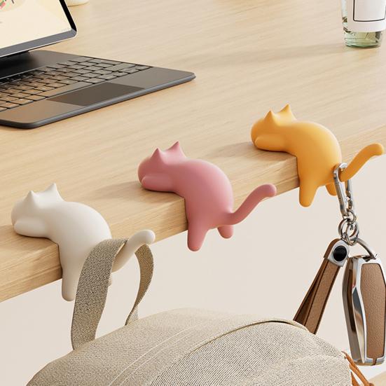 Strong Load-Bearing Capacity: Crafted from durable ABS material, this cat-shaped desk edge hook supports up to 5 kg. Its naturally rising cat tail forms a sturdy hanging point, perfect for securely holding bags, backpacks, keys, headphones, umbrellas, scarves, hats, and other small items without bending or breaking.