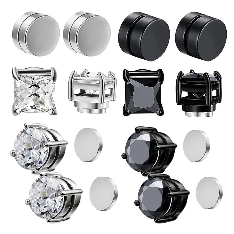 1/3Pairs Magnetic Stud Earrings Men and Women Black CZ Magnet Non-piercing Clip Earring Round Magnet Earring Without Piercing