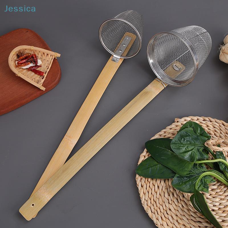Stainless Steel Strainer For Noodles Thickened Multifunctional Fine Mesh Sieve Spoon Bamboo Handle Noodle Dumplings Mesh Basket