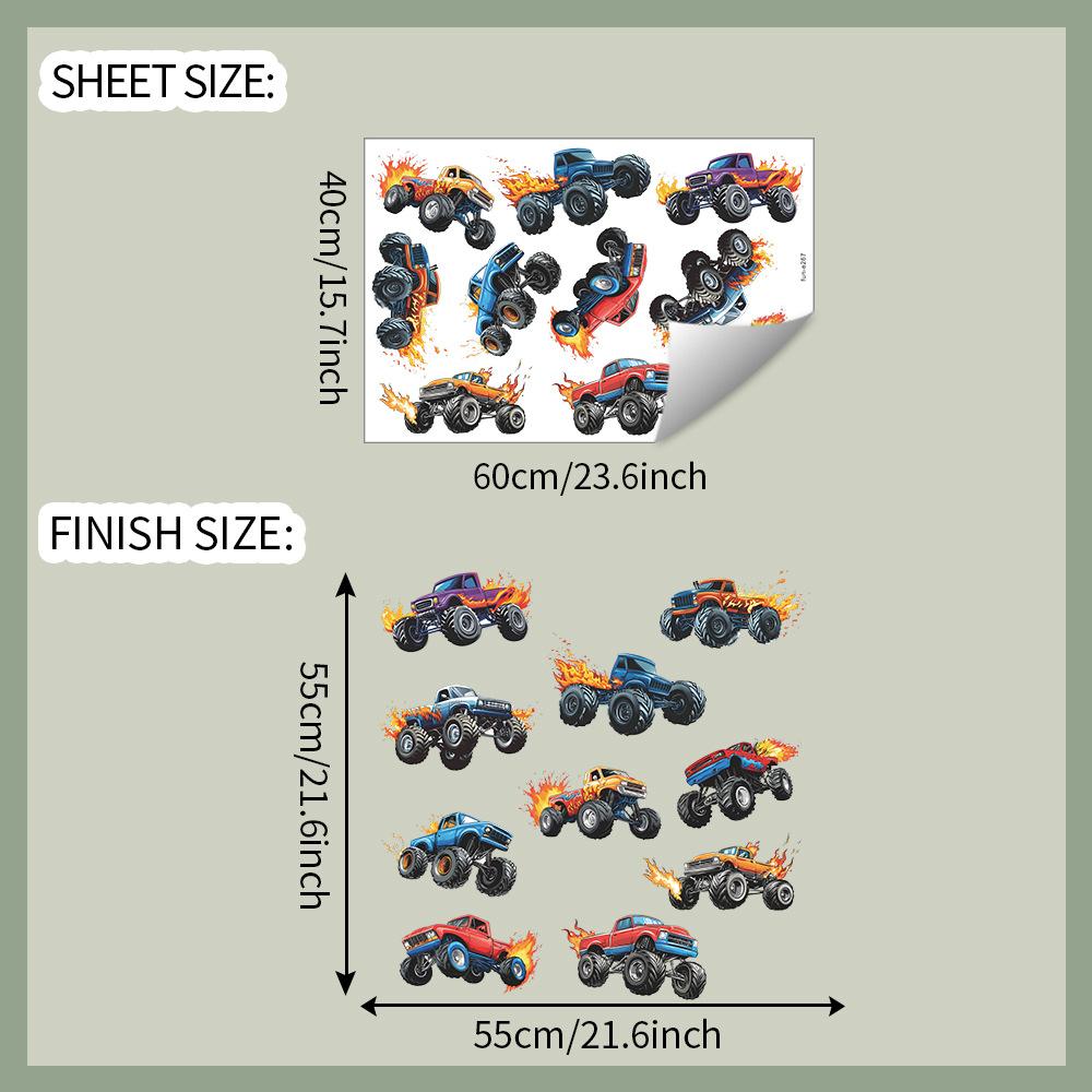 Cartoon Off-Road Car Wall Sticker Adventure Dynamic Self-Adhesive Decor for Kids Room Bedroom Living Room Man Cave