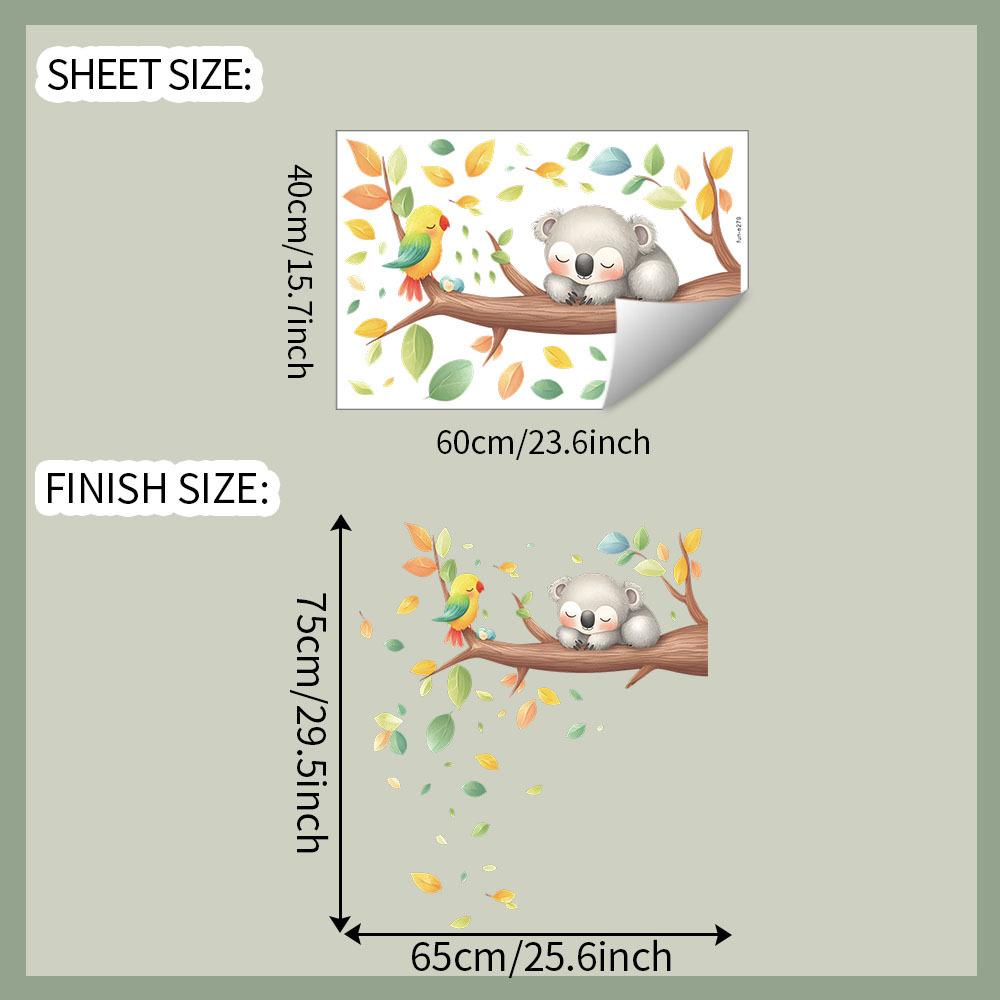 Cute Cartoon Koala On Branch Wall Sticker Sweet Nursery Self-Adhesive Decor for Kids Room Bedroom Living Room Wall Art
