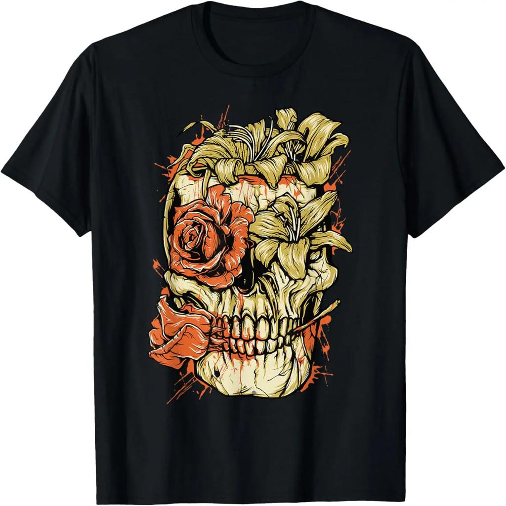 Skull Flower Red Roses Death T-Shirt