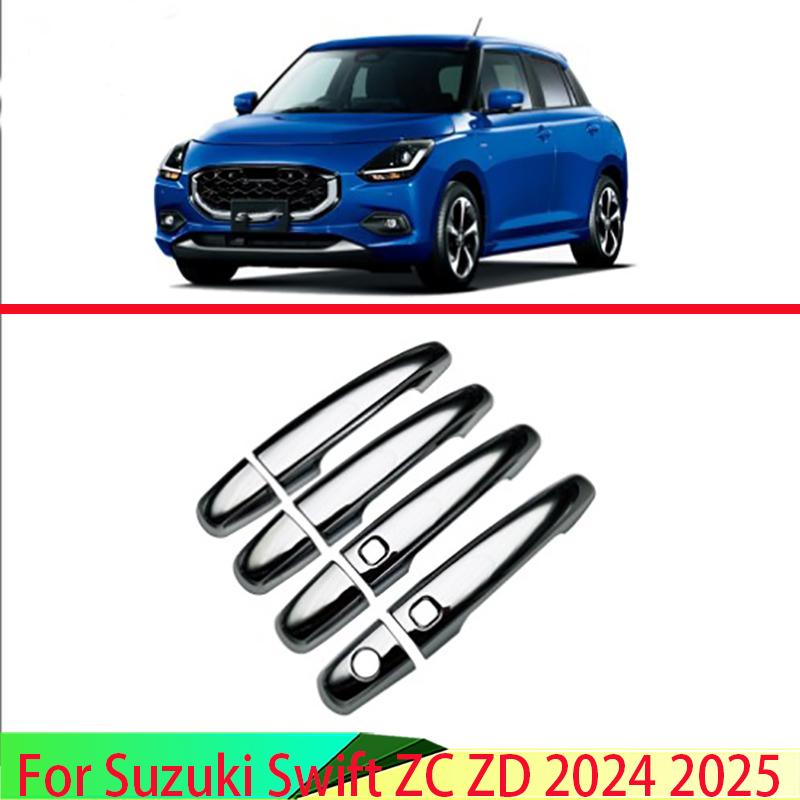 For Suzuki Swift ZC ZD 2024 2025 Car Accessories ABS Chrome Door Handle Cover With Smart Key Hole Catch Cap Trim Molding