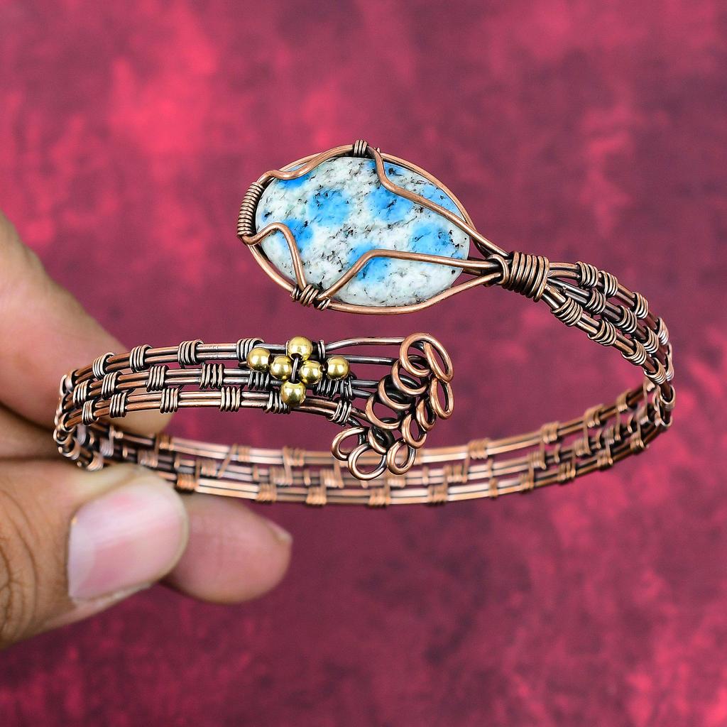 K2 Jasper Cuff Bracelet Copper Wire Wrapped Bangle Adjustable Bangle Gemstone Copper Jewelry Handmade Bangle Gifts for Him Wire Wrap Jewelry