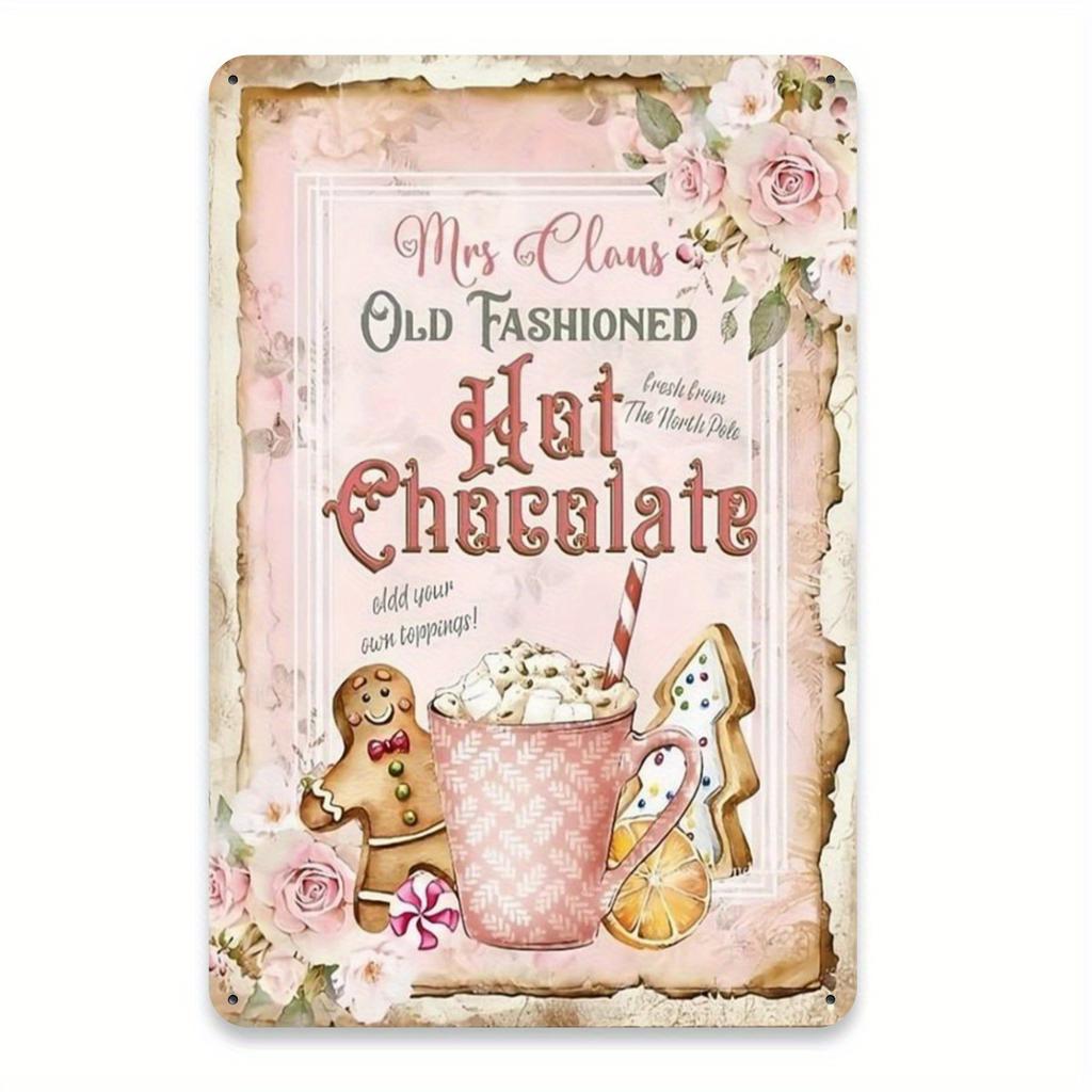 Festive Charm Vintage Pink Christmas Hot Cocoa Tin Sign Santa Mrs Claus Design Shabby Chic Metal Wall Decor for Girls Ro