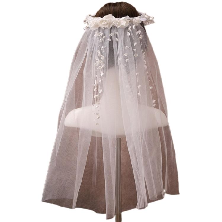 Wedding Photography Bride Long Veil with Beadwork Flower Photography Headdress