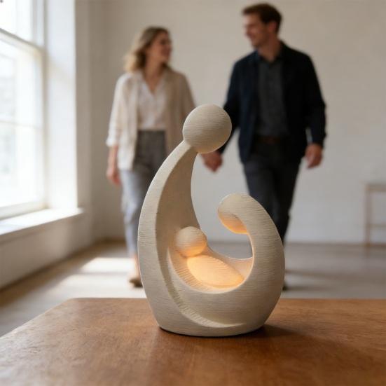 Family of 3 Figurine 3D Printed Parents And Kids Statue Modern Sculpture for Living Room Bedroom Shelf TV Stand Decor