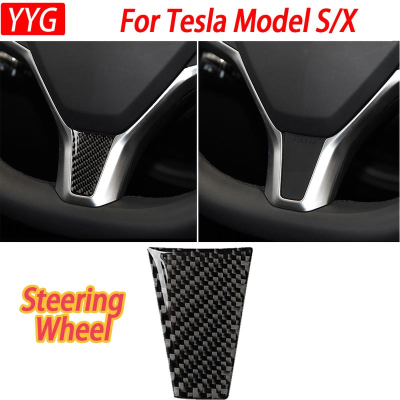 For Tesla Model S/X 2014- Car Interior Accessories Carbon Fiber Steering Wheel Decal Decorative Sticker