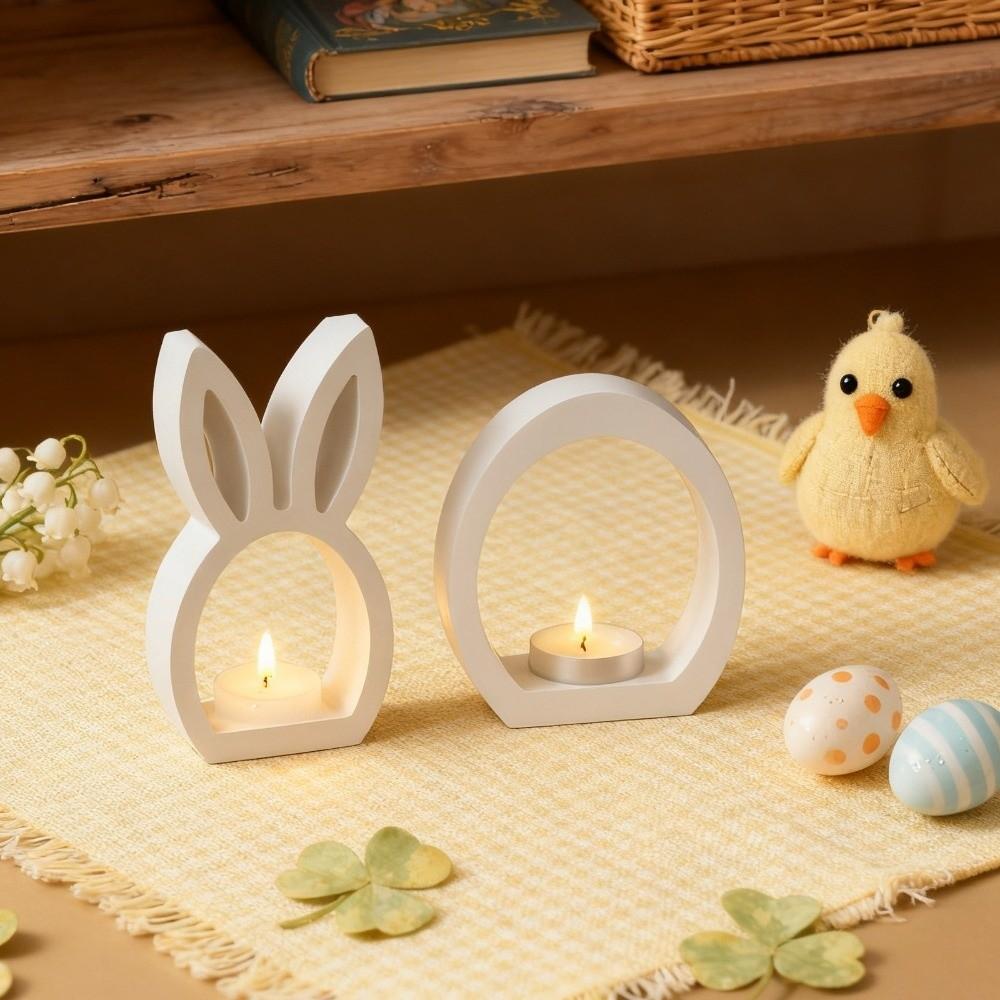 Hollow Easter Rabbit Mold Handicrafts DIY Crafts Egg Silicone Mold Non-Stick Reusable Tea Light Cup Holder Easter Decoration