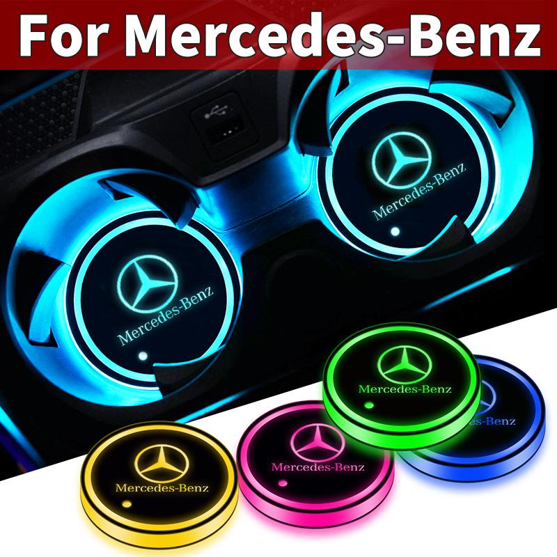 Car LED Illuminated Water Cup Coaster Atmosphere Lights Coaster for Mercedes Benz C260 W204 W205 W211 W212 W190 Auto Accessories