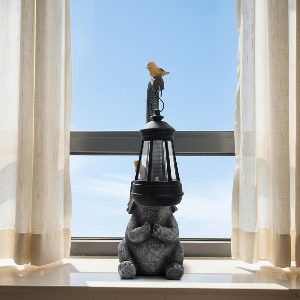 Elephant Outdoor Garden Statue Ornament with Solar Lantern Resin Craft Lovely Landscape Lamp
