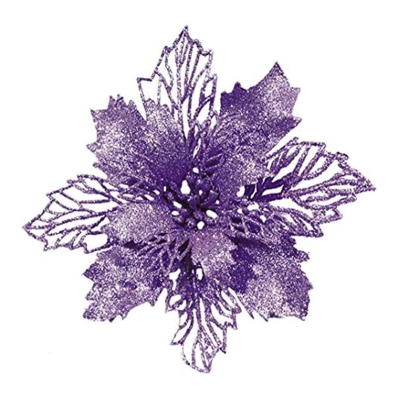 11cm Christmas Glitter Poinsettia Flower Decorative Xmas Tree Flowers for Wreath Ornaments Wedding Party Spring Festival New