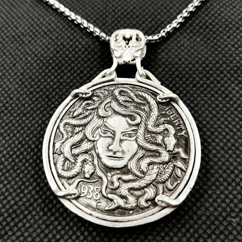 Beauty Snake, Wanderer Coin, Antique Silver Dollar, Antique Coin Necklace Pendant, Collection, 1907,1922
