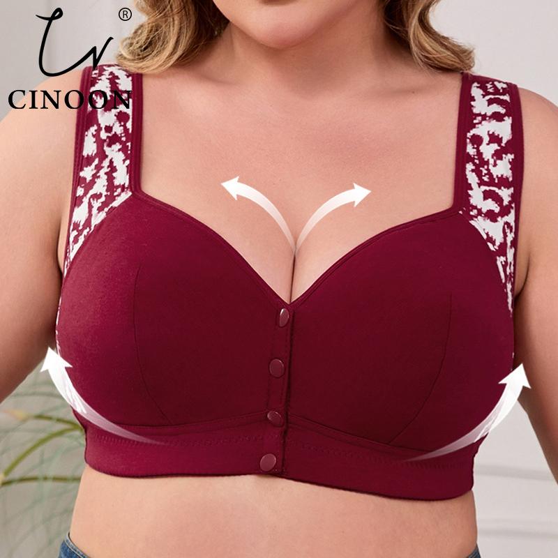 CINOON Women Plus Size Front Closure Wireless Bra Printed Wide Shoulder Straps Brassiere Push Up Breathable Soft Bralette 1-7XL