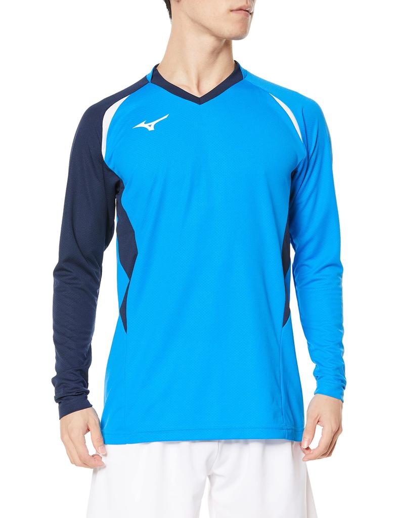 Mizuno Volleyball Game Shirt, Long Sleeve, Moisture-Wicking, Quick-Drying, Junior Available, V2MA2122, Diva Blue X Dress Navy X White, Size L