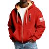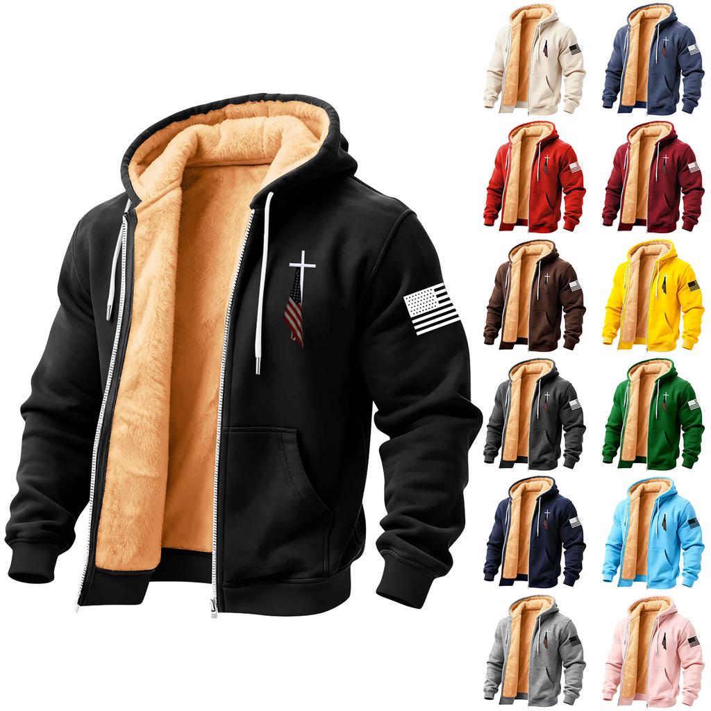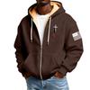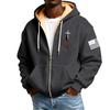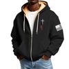 Men's Flag Print Fleece-Lined Zip-Up Pocket Hooded Sweatshirt Cardigan Men's Casual Sweatshirt Cardigan
