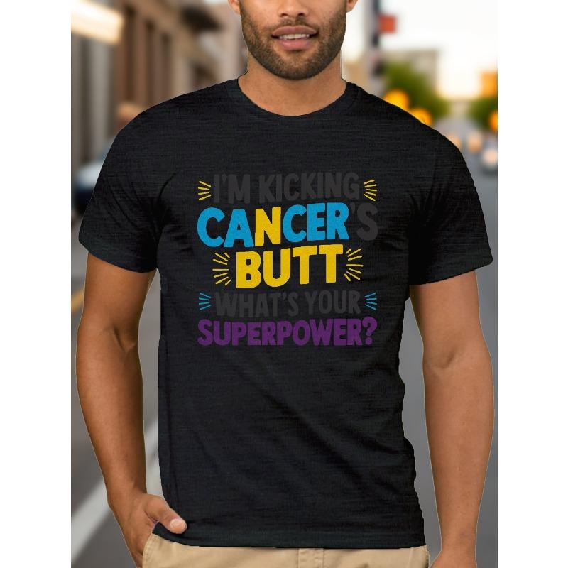 European Sizes Plus Size Men's Summer T-shirt, Kicking Cancer S Butt Graphic Print Short Sleeve Tees Trend Casual Tops For Daily Life