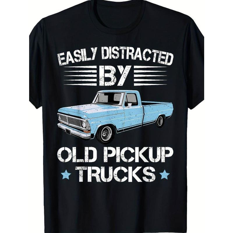 European Sizes Men's Graphic Oversize T-shirt Trucks 3D Printed Design Black Short Sleeve Round Neck Breathable Comfortable Casual Oversize T-shirt